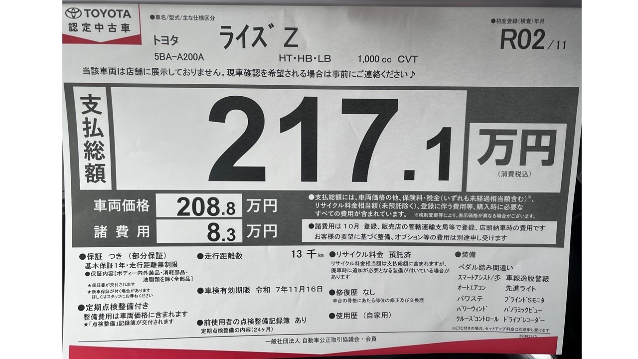 コチラのライズは町田旭町店駐車場に展示してありますのでぜひご覧ください(*‘ω‘ *)