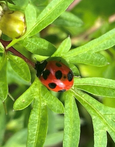 ドーン!お店の花壇にナナホシテントウムシが!!!