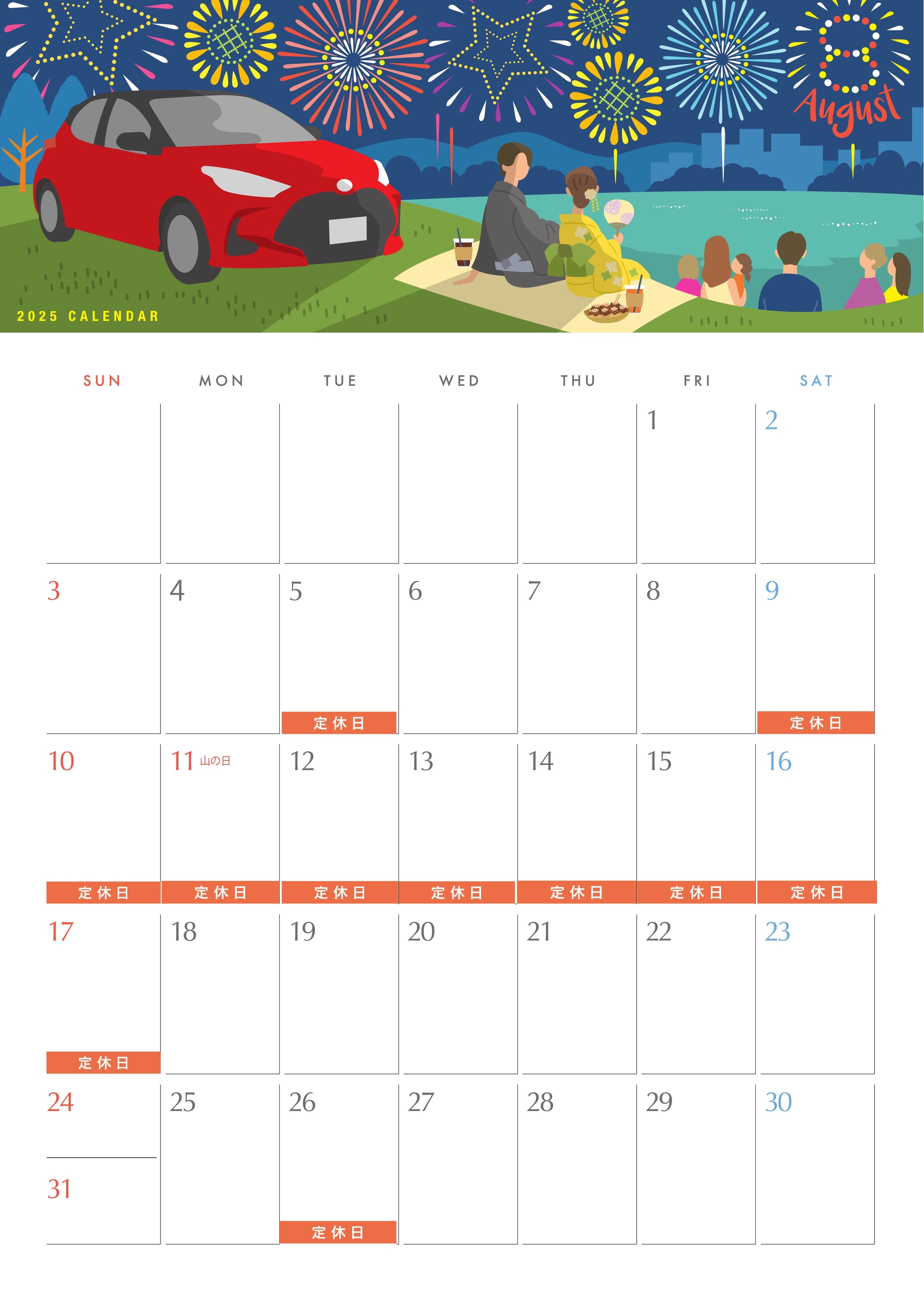 8月は通常月と休みが異なりますのでご注意ください。