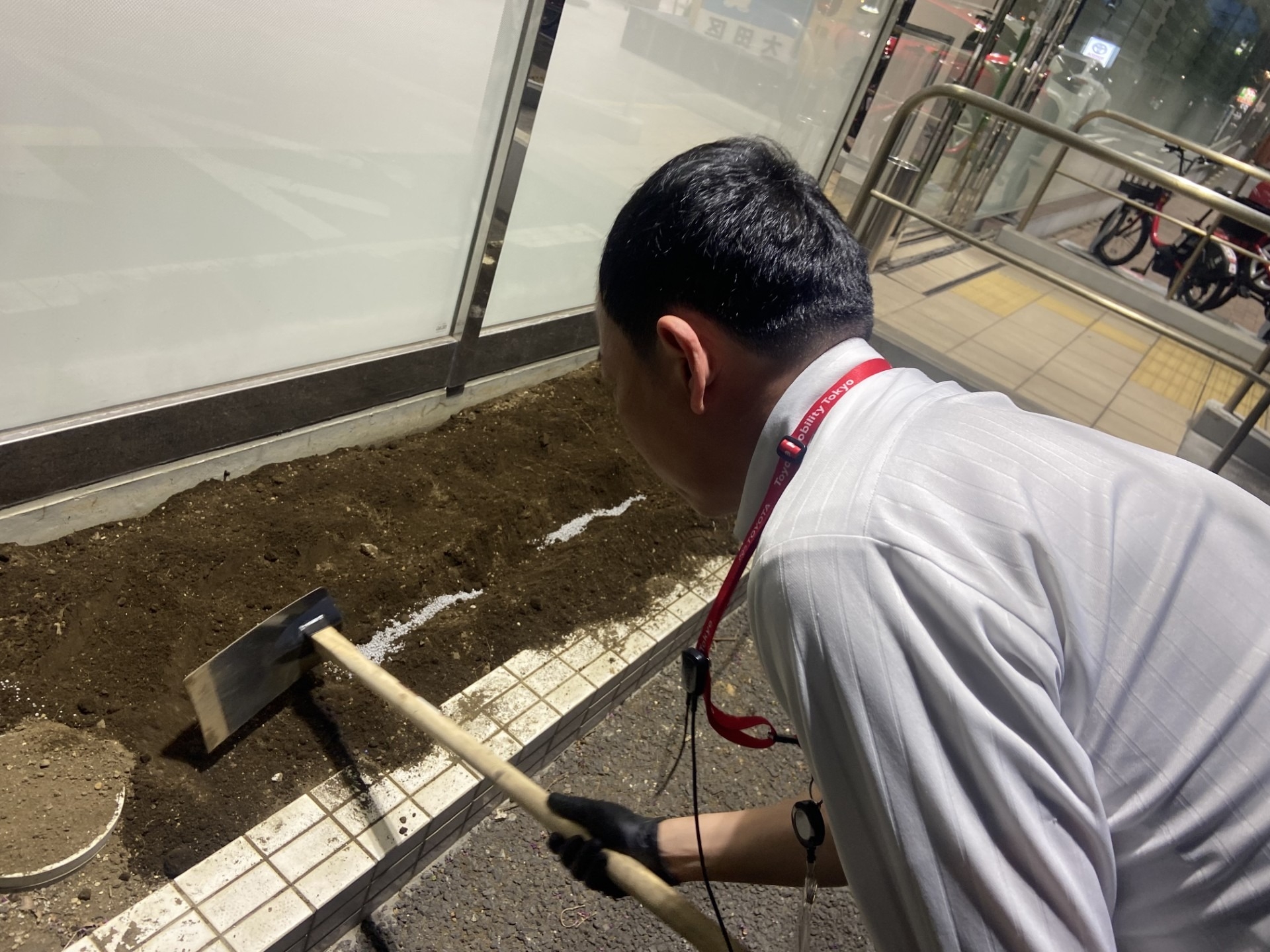 見事な手さばきで、土を耕し、肥料をまいて、種をまき、やさしく土をかけていました‼