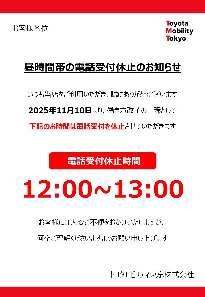 “お昼時間帯の電話受付”についてご案内です。
