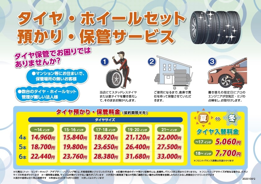 【タイヤ・ホイールセット】預かり・保管サービスのご案内🚙