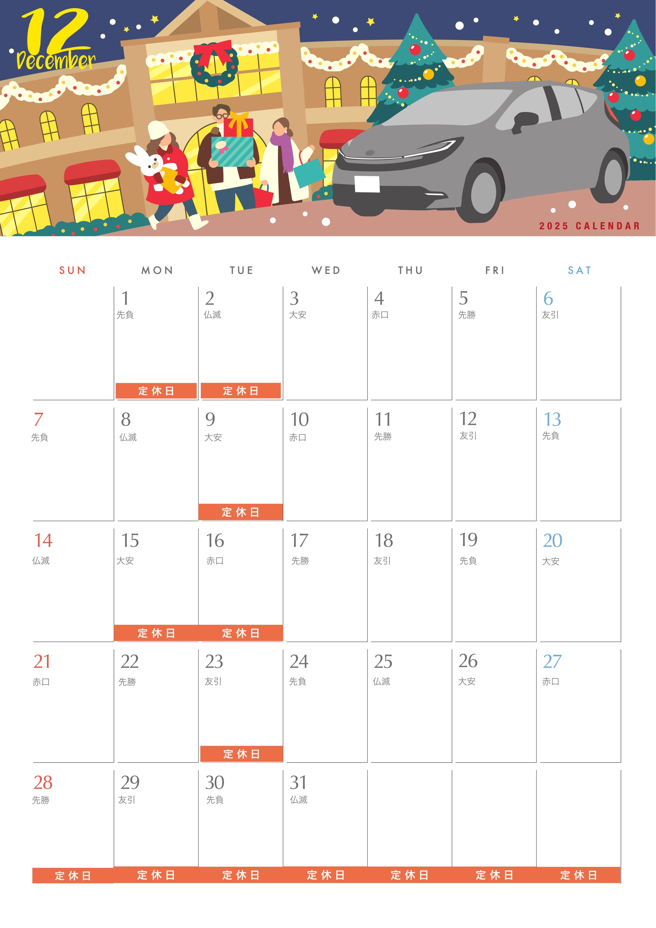 12月定休日のお知らせ 2025.11.19 江戸川中央ウェルキャブステーション 江戸川中央ウェルキャブステーション 12月定休日のお知らせです。 12月は通常の定休日に加え 12月28日から1月5日まで 年末・年始休業させて頂きます。 江戸川中央ウェルキャブステーション ☎03-5678-1185 前の記事へ 店舗ブログ一覧に戻る 次の記事へ