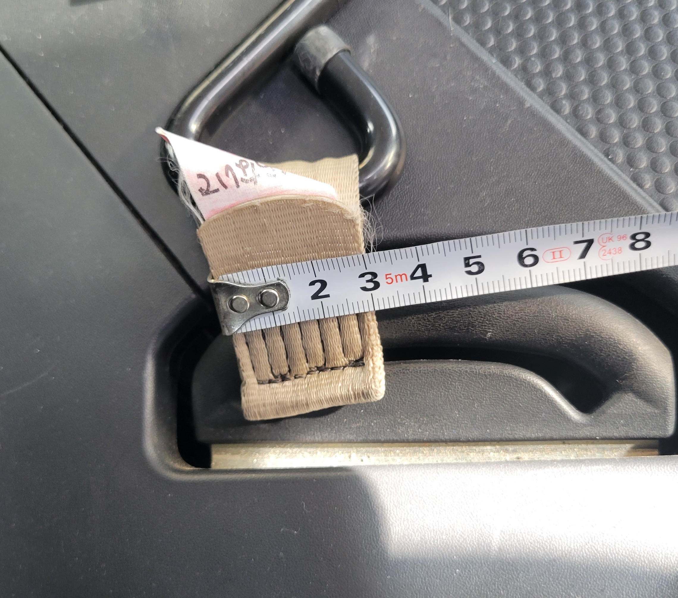 後退防止ベルト(ベージュ色のベルト)に