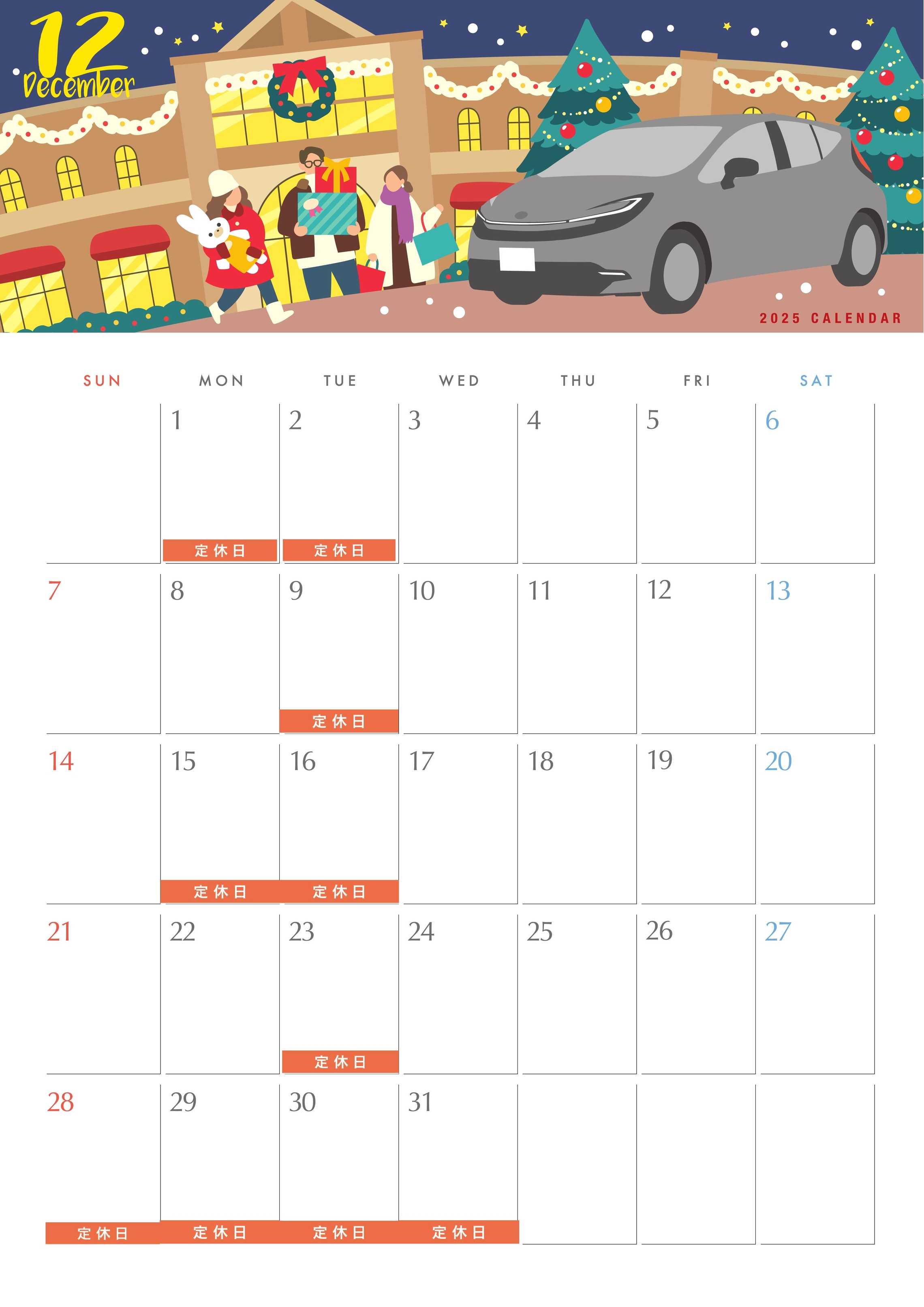 12月の定休日は1日(月)、2日(火)、9日(火)、15日(月)、23日(火)