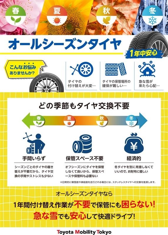 今日は、シーズンごとの交換や保管場所がいらないオールシーズンタイヤのご紹介です。