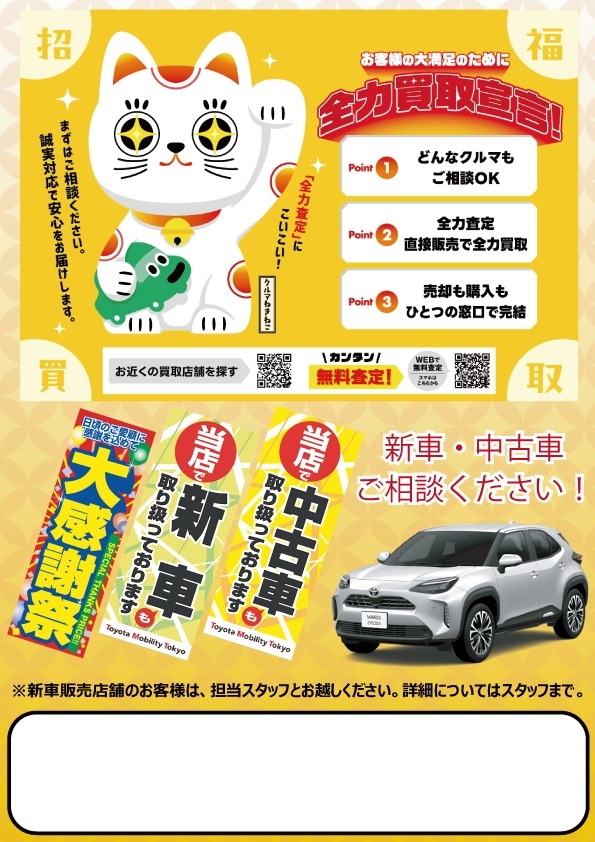 2月15日までの期間中、より多くの中古車を取り揃えてございますので