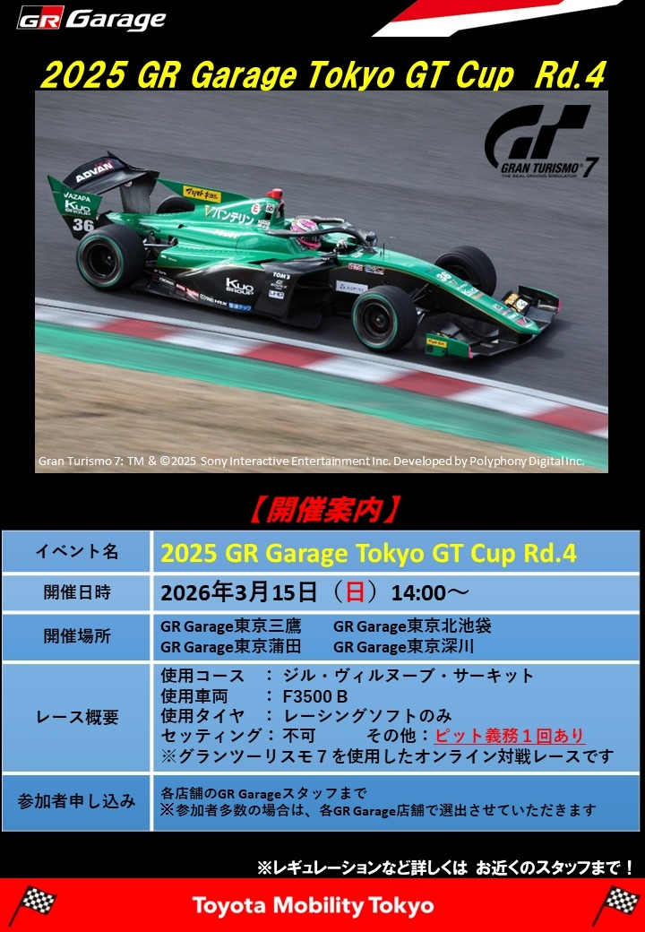 【2025 GR Garage Tokyo GT Cup Rd.4】 開催のお知らせです。