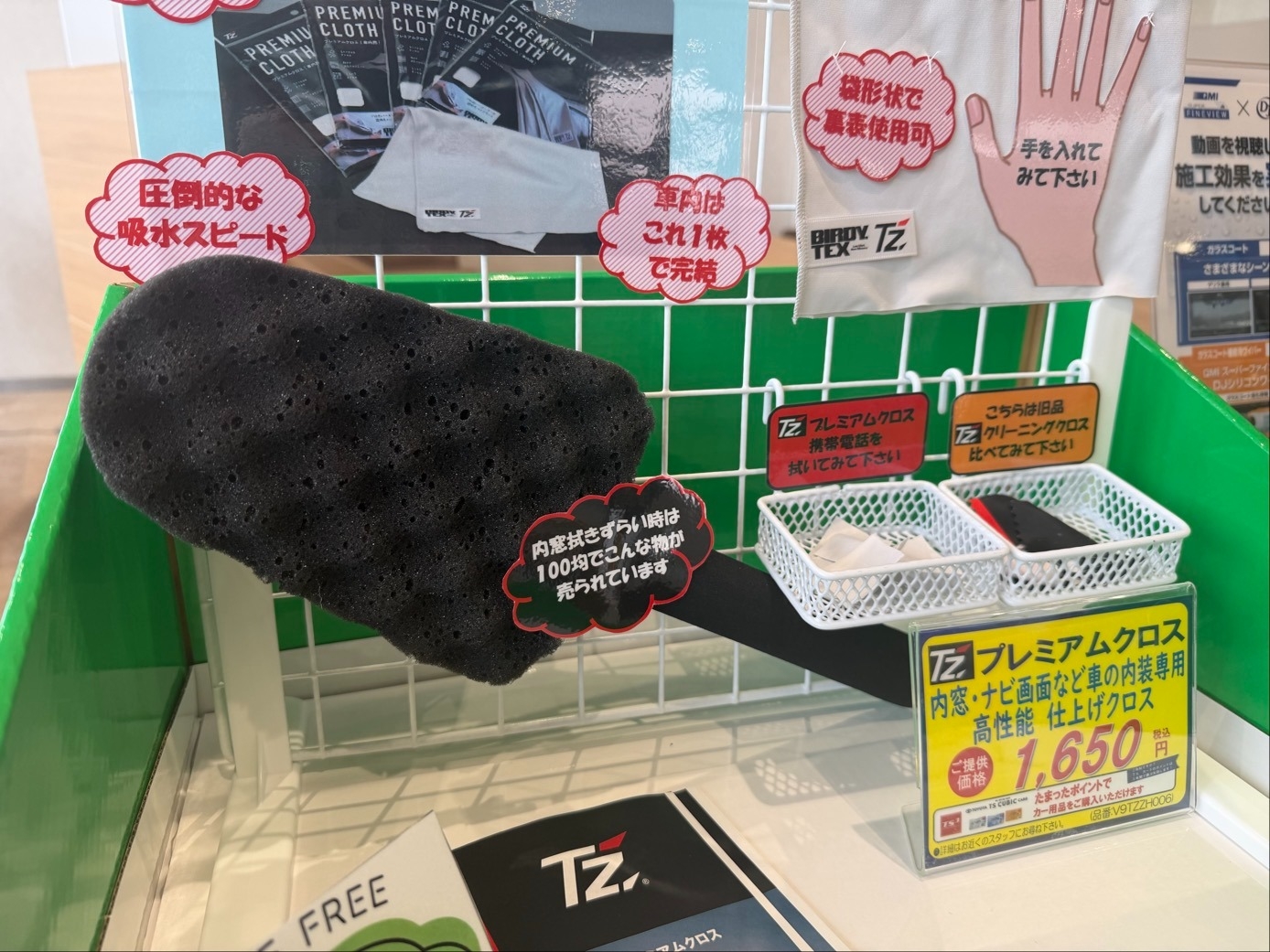 そんな時は100円ショップなどにも売っている、下のスポンジようなものにこのプレミアムクロスをつけていただくときれいに拭いていただけます!