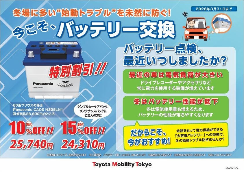 3月31日までバッテリーの部品代が10%~OFF🔥