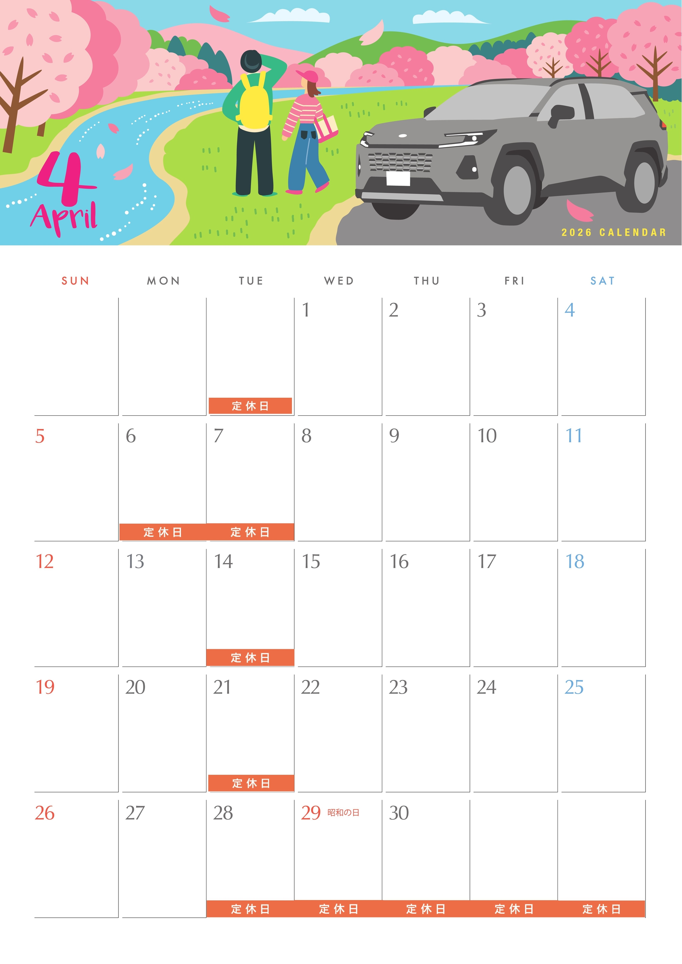 4月のお休みををご案内いたします。