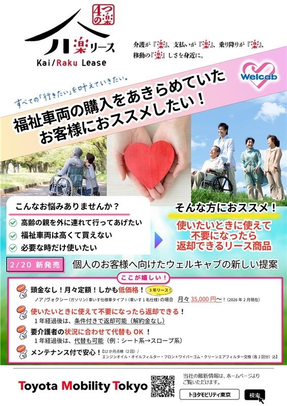 個人のお客様へ向けた新しいウェルキャブのリースプランが誕生いたしました!