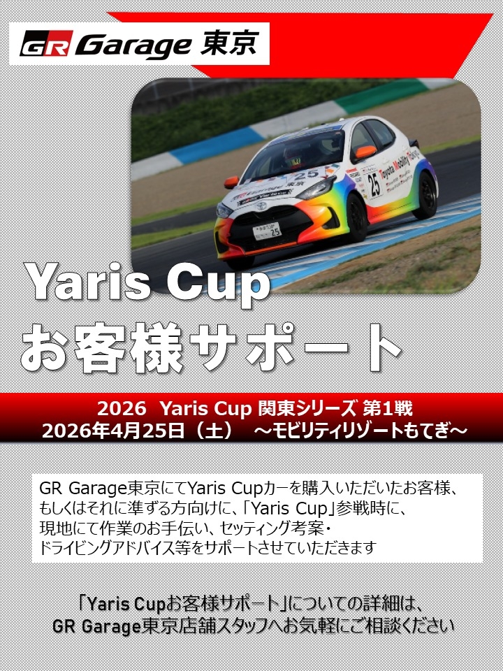 GR Garage東京では、4月25日(土)に開催される「2026ヤリスカップ関東シリーズ