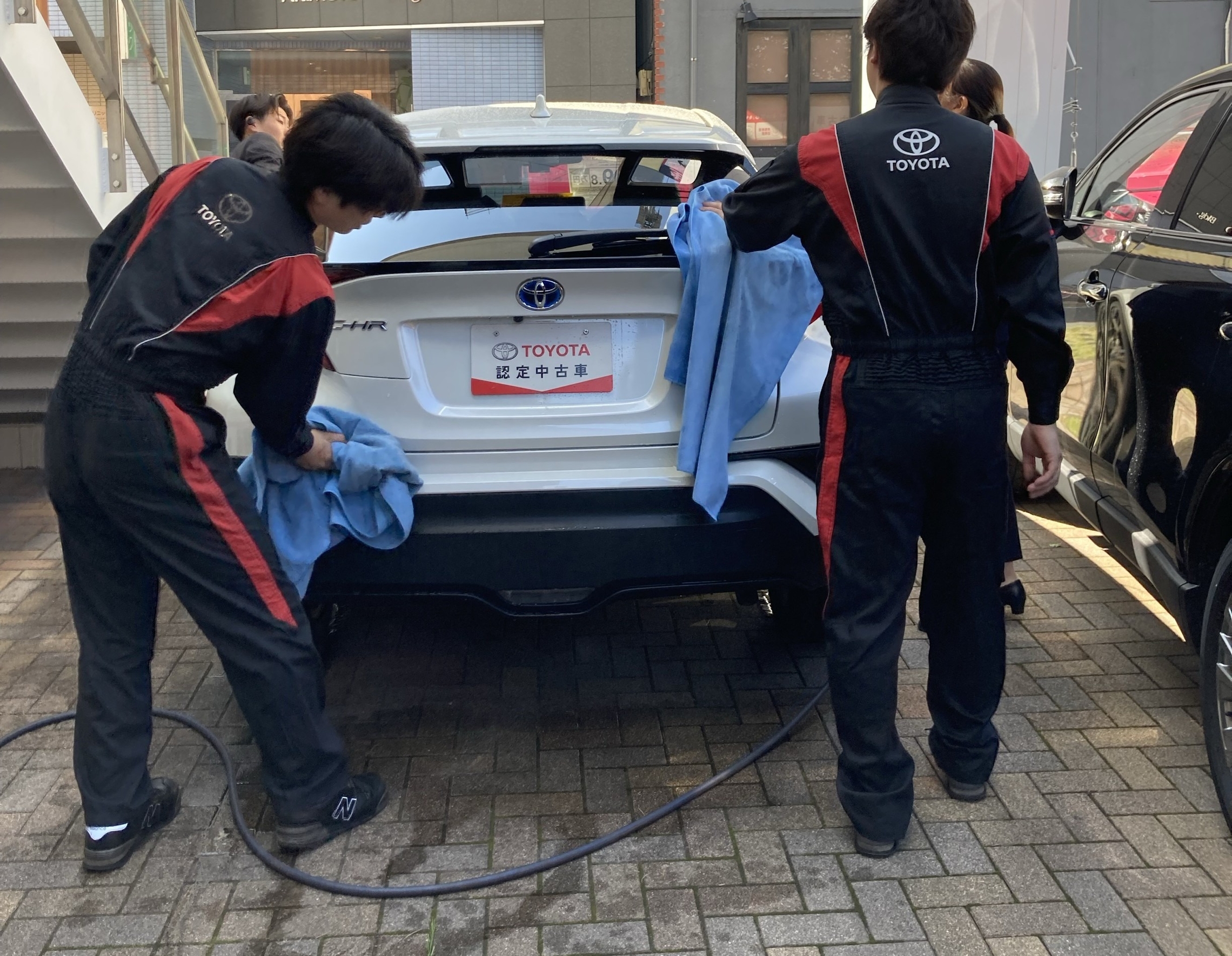 さっそくスタッフ皆で試乗車や展示中古車の洗車をしました✨