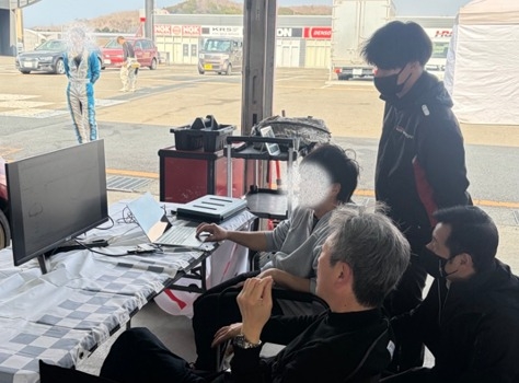 おもな内容は、本番と同じコースを使い、機器を用いて弊社参戦ドライバーとお客様の