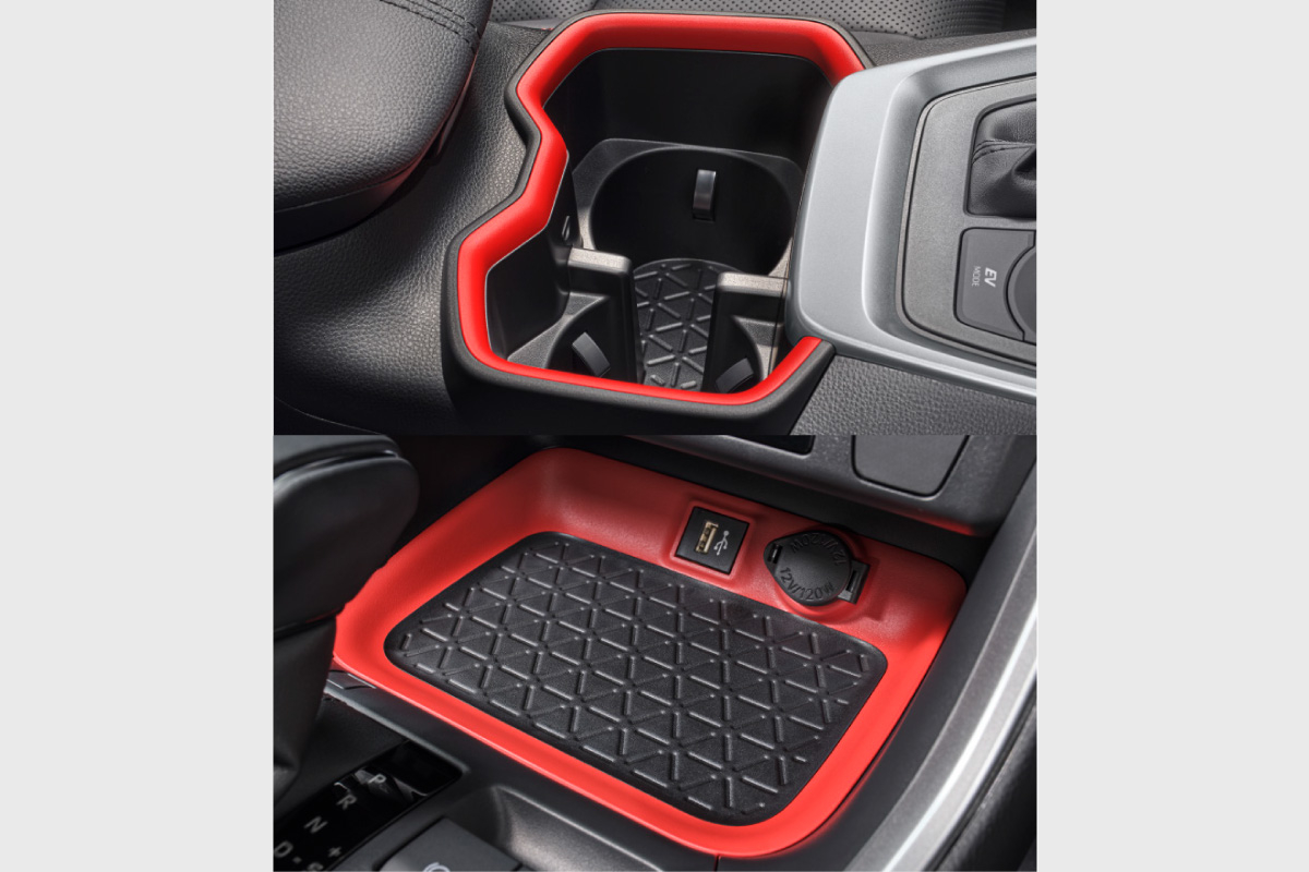 ■写真Z。ボディカラーのアティチュードブラックマイカ〈218〉×エモーショナルレッドⅡ〈3U5〉[2SC]はメーカーオプション。内装色はブラック。パノラマムーンルーフはメーカーオプション。