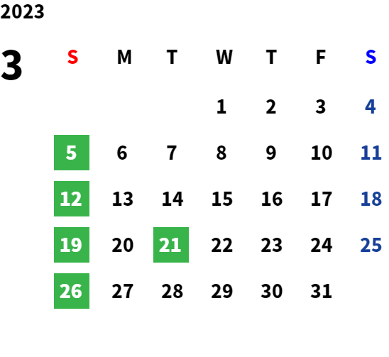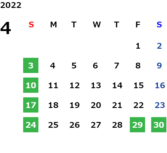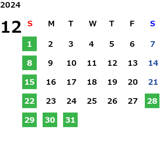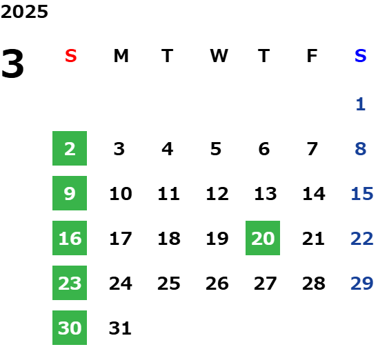 ※ 一部、特別営業日がございます。詳しくは営業日カレンダーをご確認ください