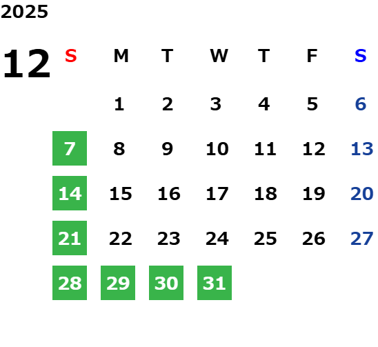 ※ 一部、特別営業日がございます。詳しくは営業日カレンダーをご確認ください