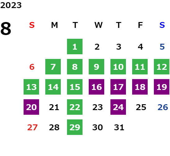 ※ 一部、特別営業日がございます。詳しくは営業日カレンダーをご確認ください