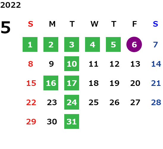 ※ 一部、特別営業日がございます。詳しくは営業日カレンダーをご確認ください