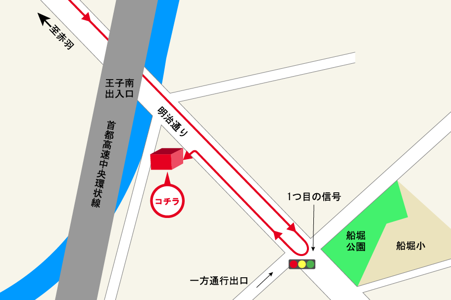 アクセス方法 :明治通り、王子南インターすぐ横。 JR王子駅南口より徒歩5分。東京メトロ王子駅より徒歩10分。