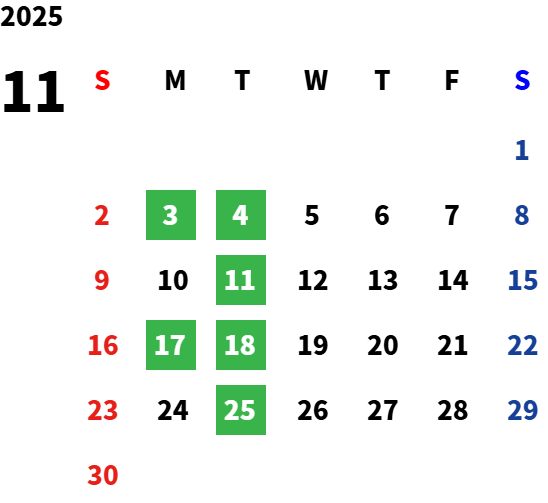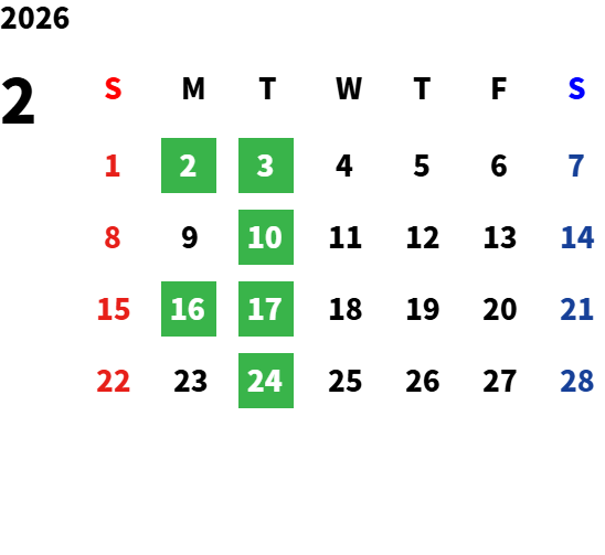 火曜日および第1・第3月曜 ※ 一部、特別営業日がございます。詳しくは営業日カレンダーをご確認ください
