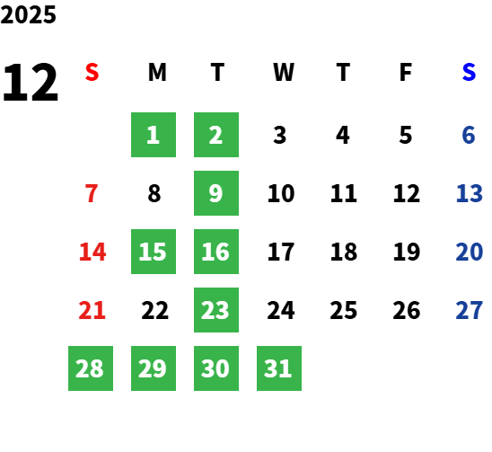 ※ 一部、特別営業日がございます。詳しくは営業日カレンダーをご確認ください