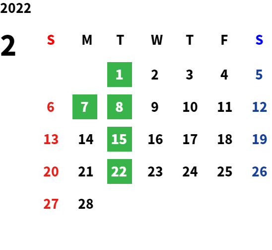 火曜日および第1・第3月曜 ※ 一部、特別営業日がございます。詳しくは営業日カレンダーをご確認ください