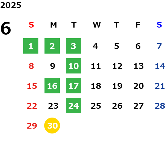 ※ 一部、特別営業日がございます。詳しくは営業日カレンダーをご確認ください