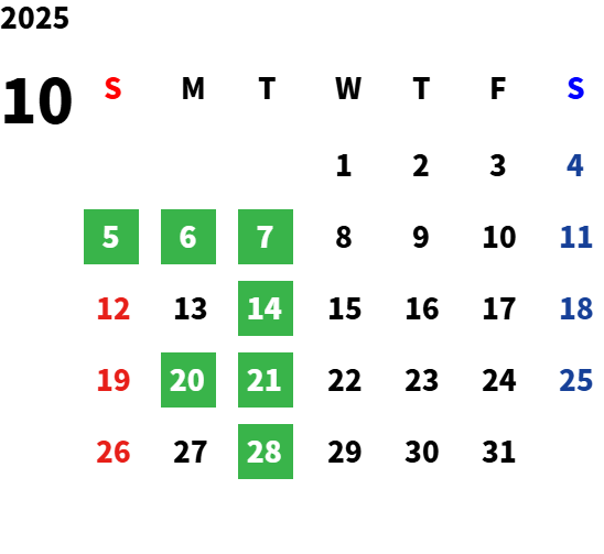 火曜日および第1・第3月曜日、月1回日曜日 ※ 一部、特別営業日がございます。詳しくは営業日カレンダーをご確認ください