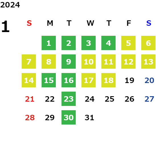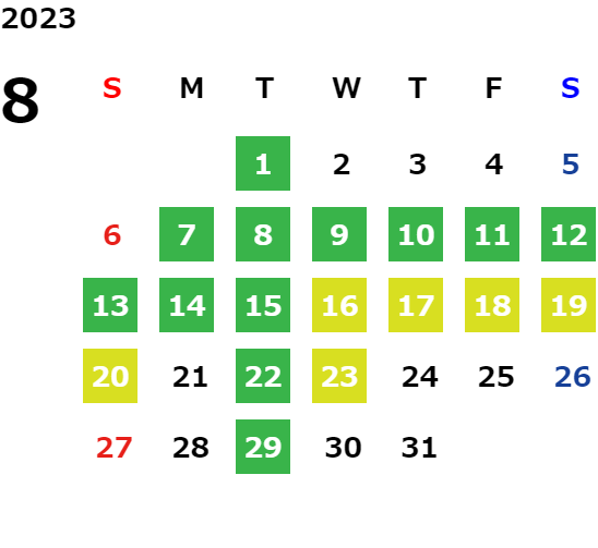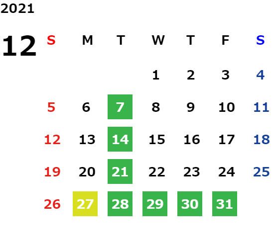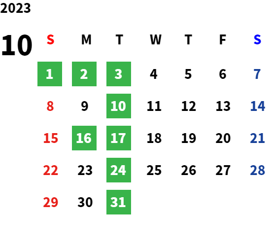 火曜日および第1・第3月曜日、月1回日曜日 ※ 一部、特別営業日がございます。詳しくは営業日カレンダーをご確認ください