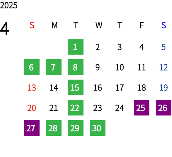 ※ 一部、特別営業日がございます。詳しくは営業日カレンダーをご確認ください