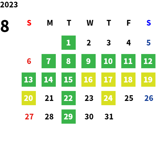 火曜日および第1・第3月曜日、月1回日曜日 ※ 一部、特別営業日がございます。詳しくは営業日カレンダーをご確認ください