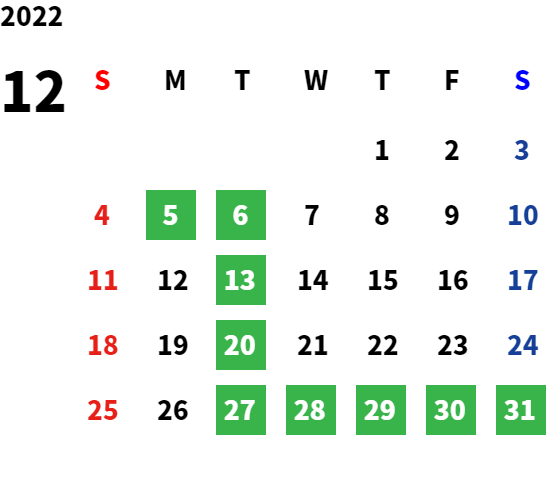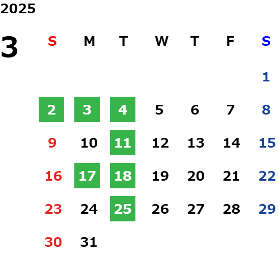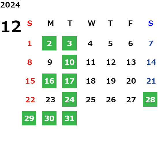 火曜日および第1・第3月曜日、月1回日曜日 ※ 一部、特別営業日がございます。詳しくは営業日カレンダーをご確認ください