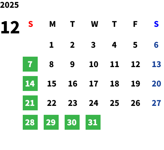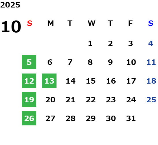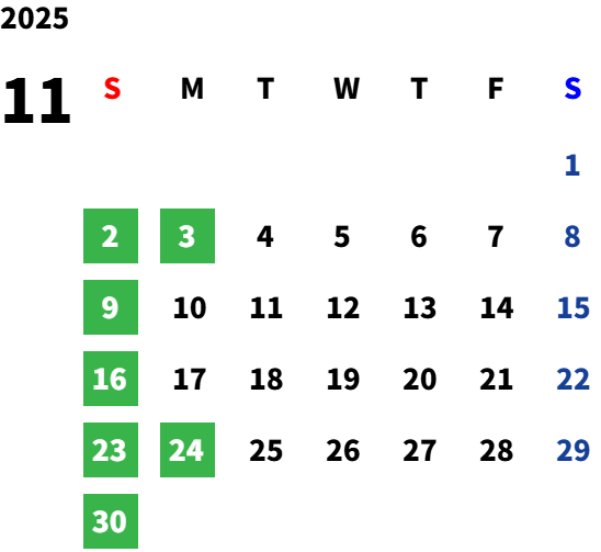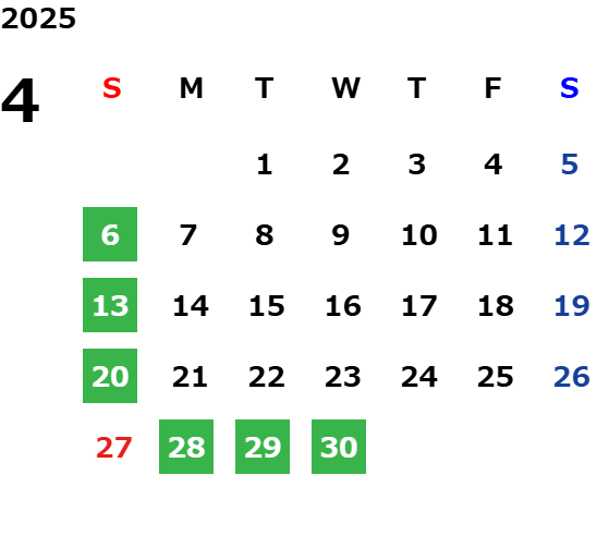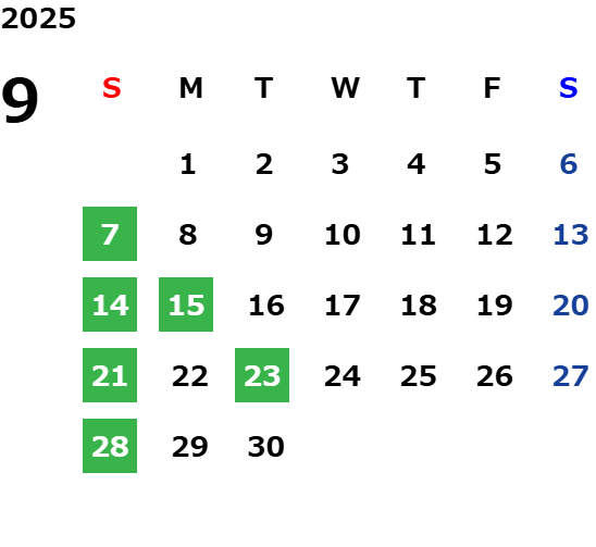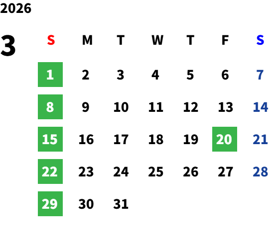 日曜・祝日 ※ 一部、特別営業日がございます。詳しくは営業日カレンダーをご確認ください